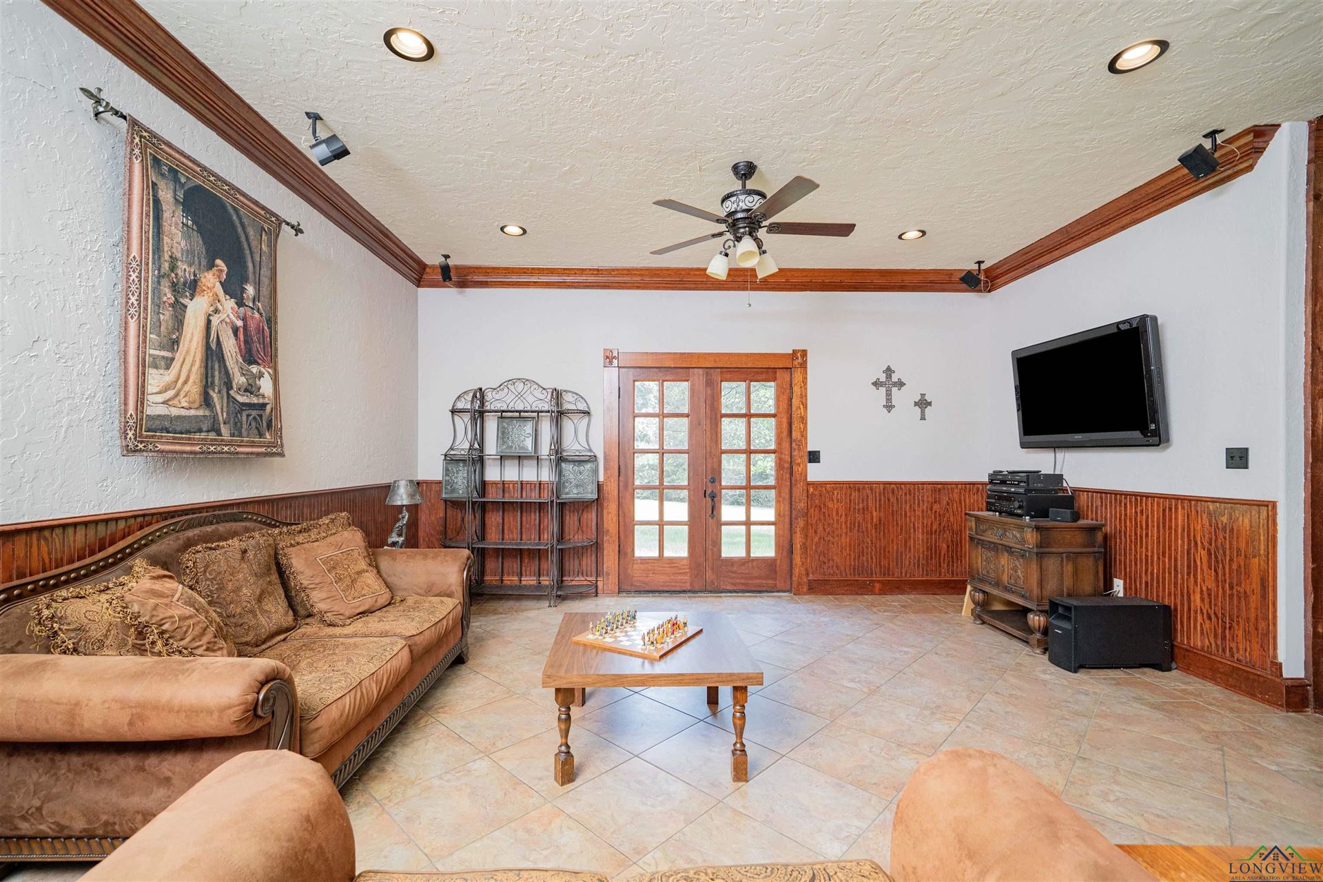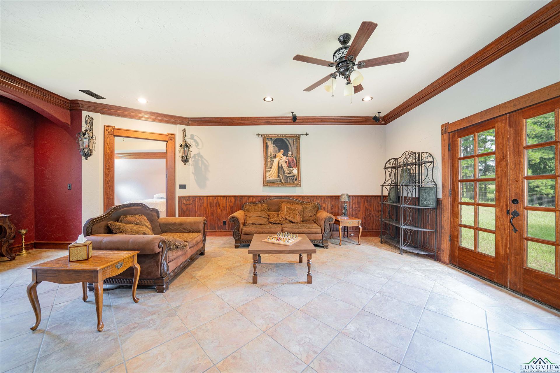 - INTERIOR: Tile Flooring, High Ceilings, Ceiling Fan